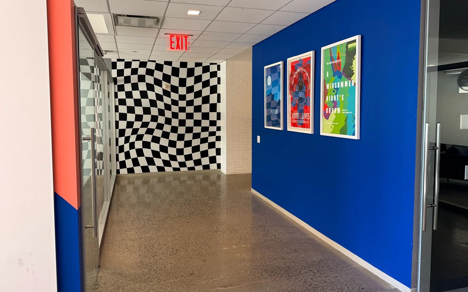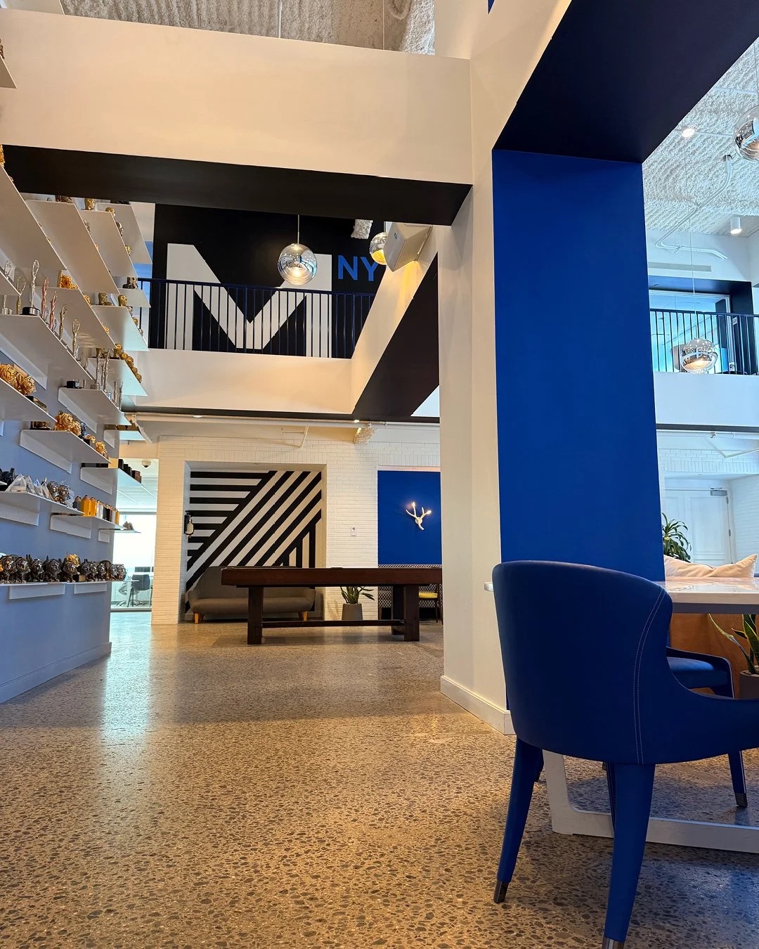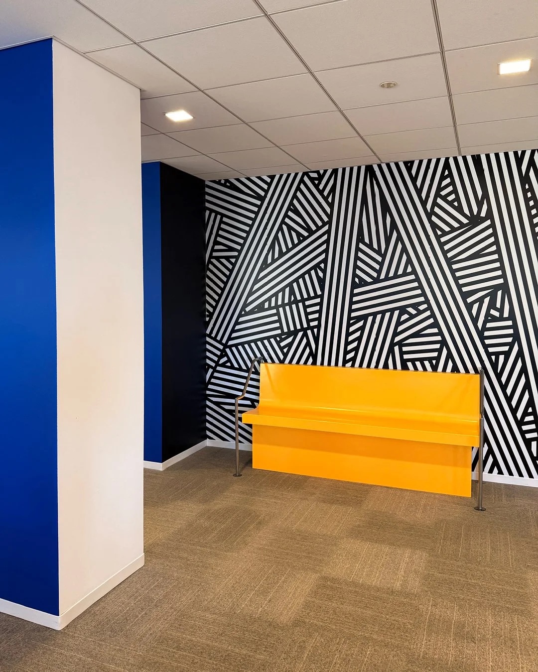 dynamic wall graphics, and playful color accents throughout the space. the result